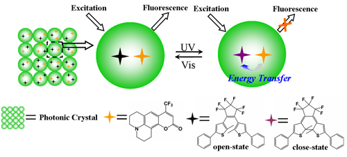 图1 二芳基乙烯/香豆素薄膜在光子晶体表面及存储应用的示意