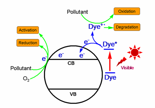 图1 染料污染物可见光光催化降解机理