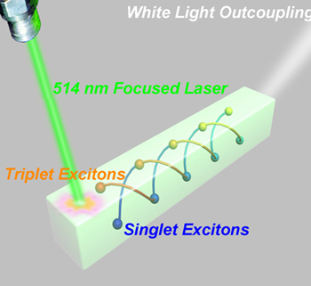有机纳米线中激子激元传播与能量转移示意图