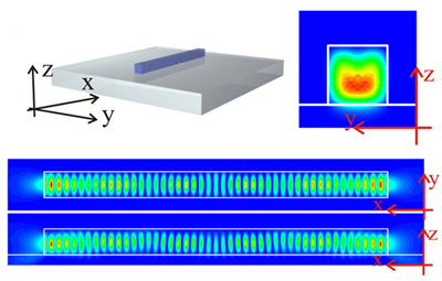 最近,在国家自然科学基金委、科技部、中国科学院和化学所的支持下,科研人员在前期工作的基础上制备了三重态敏化剂均匀掺杂的有机纳米波导材料,通过激子极化激元传播过程中的双向能量转移,实现了稳定白光耦合输出的光波导器件 (Adv. Mater., 2011, 23, 1380-1384)。该工作证实了有机低维材料的波导过程中存在Frenkel激子与光子的耦合,为实现基于激子极化激元的有机光子学器件奠定了基础。进一步以阳离子表面活性剂为模板,诱导双光子荧光分子自组装,形成了四方截面的有机纳米线。通过测量有机纳米线微腔中Fabry-Pérot型发光光谱和模拟激子激元谐振模型下的电场强度分布,研究了其中激子极化激元传播并发生谐振的行为,同时实现了双光子泵浦的有机纳米线激光器(J. Am. Chem. Soc.,2011,133, 7276–7279)。相关研究结果为实现有机纳米光子学器件提供了新的思路。