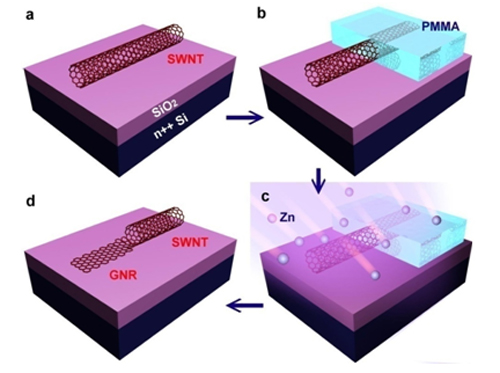 图4 单壁碳纳米管/石墨烯带分子内结的制备过程