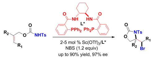 图1 手性膦-Sc(OTf)3催化的烯烃不对称溴环化反应