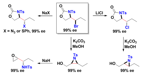在科技部、国家自然科学基金委、中国科学院和化学所的支持下,化学所分子识别与功能院重点实验室的科研人员经过一系列的探索性研究,发现了手性膦-Sc(OTf)3催化的烯烃不对称溴环化反应可以生成光活性噁唑啉酮衍生物,取得优异的对映选择性。反应操作简便,催化剂用量低,底物适用范围广,具有潜在的工业应用价值。产物还能进行多种衍生,溴原子可以构型翻转地被多种亲核试剂(如叠氮负离子,苯硫负离子,氯负离子等)取代,还可以水解生成光活性氮杂环丙烷衍生物,具有重要的应用前景。相关研究成果发表在J. Am. Chem. Soc., 2013, 135, 8101。此项研究成果是该课题组在继仿生转胺化(J. Am. Chem. Soc.,2011, 133, 12914; Org. Lett., 2012, 14, 5270; Org. Biomol. Chem., 2012, 10, 8960;Chem. Commun., 2013, 49, 1404)之后取得的又一突破性进展。
