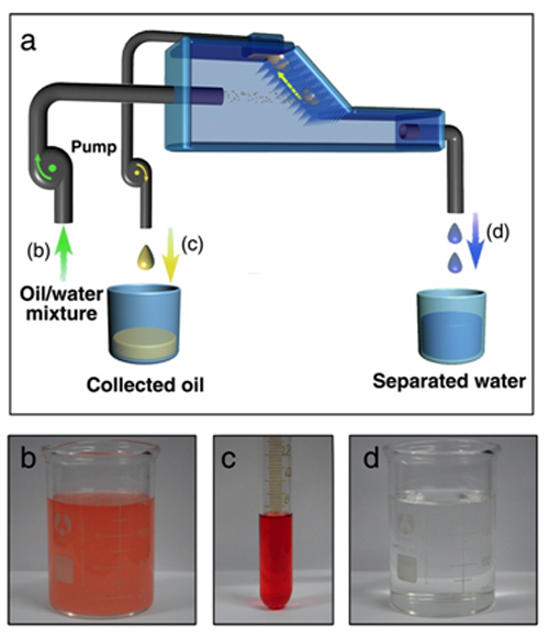 在中国科学院、国家自然科学基金委的大力支持下,化学所有机固体院重点实验室的研究人员与清华大学、北京大学合作,在连续高效油水分离方面又取得新突破。该结果最近以全文的形式发表在《自然通讯》 (Nat. Commun. 4:2276 doi: 10.1038/ncomms3276 (2013)) 上,结果一经发表,就被Science、BBC、新华社、光明日报等媒体报道。