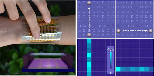 OTFT具有信号转换和信号放大功能,理论上讲是构建超高灵敏度压力传感器件的理想载体之一。尽管人们已基于弹性介电层制备了性能优异的OTFT压力传感器(≤8.4 kPa-1),该类器件面临介电层的弹性极限问题,超高灵敏度压力传感器件(≥100 kPa-1)难以实现。最近,化学所有机固体实验室的科研人员在OTFT压力传感研究方面取得了重要进展。科研人员首次成功构建了柔性悬浮栅有机薄膜晶体管(SGOTFT),有效避免了介电层弹性极限问题并使得器件的压力传感特性决定于栅极的机械性质。基于该原理,科研人员构建了灵敏度高达192 kPa-1的超高灵敏度压力传感器,这是目前已报道柔性压力传感器的最优结果。此外,该类器件展现了非常优异的柔韧性、稳定性和低电压操作特性,相应的器件阵列成功应用于人体脉搏的检测和微小物体的运动追踪,在人工智能和可穿戴健康监测方面显示了非常好的应用前景。相关研究成果发表在Nature Communications ,2015, 6,6269)上。