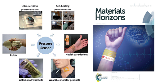 图2 柔性压力传感器应用领域示意图(左)和期刊当期封面图(右)