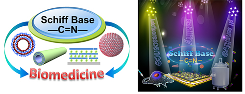 西佛碱键(亚胺键)是一种动态共价键。与静电、氢键等弱相互作用相比,基于西佛碱键的分子组装体的稳定性更好。与普通共价键相比,西佛碱键的反应条件温和,且无副产物,不破坏组装体的结构。基于西佛碱键作用的分子组装体具有自发荧光性质和pH响应性,因此,在用于生物医药材料的组装中具有明显的优势。