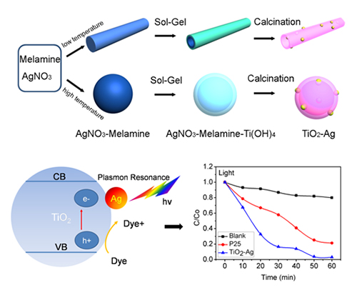 该课题组致力于功能化纳米结构可控组装的应用基础研究,近年来取得了系列成果。研究人员利用限制性固液反应可控制备二氧化锰微球和立方块,结合“Kirkendall effect”原理,通过模板法可控组装了一系列金属氧化物的多级结构,用于包埋小的染料分子(Adv. Mater. 2008, 20, 452-456)。在此基础上,利用同样方法可控组装了由纳米片组成的聚合物空心立方体的纳米结构(ACS Nano 2009, 3, 3714-3418)。进一步地结合绿色介质下的微波化学,借助生物小分子茶多酚与贵金属离子配位作用和氧化还原反应,超快可控组装了多种贵金属@茶多酚核壳纳米结构(ACS Nano 2014, 8, 8529-8536),其中,银@茶多酚能选择性抑制大肠细菌的生长。在此基础上以小分子三聚氰胺与银离子通过配位作用形成的超分子复合物为模板(Small 2013, 9, 1021-1024),进一步借助表面溶胶-凝胶反应,结合“Rayleigh instability”原理,控制反应温度可控组装了TiO2-Ag多孔纳米管和纳米球,发现其具有明显的表面等离子体增强可见光催化效能。