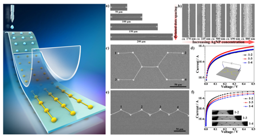 图2 基于银纳米线组装制备的柔性微电路芯片