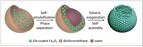 图1 磁性纳米粒子自组装形成单孔空心球的示意图