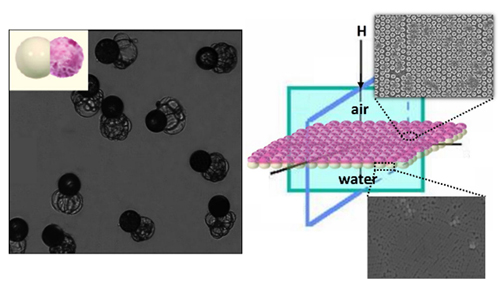与具有对称性结构的粒子相比,Janus微粒由于其独特的各向异性,在催化、载药、传感、水处理等方面具有许多潜在的应用,同时具有较为特殊的聚集行为,极易发生自组装,可用于模拟分子的自组装。而Janus微粒自组装的实际应用受限于单分散、量大、形貌可控的Janus微粒的制备。在最近的研究中,该实验室科研人员通过自行研制的液滴微流控平台,利用磁控诱导浸润调变的原理,制备出两亲性、磁响应、单分散的Janus微粒;并基于形貌各向异性、两亲性、外磁场的协同自组装模式,形成了一个大面积、两亲性的单层膜,可应用于智能涂层、防污表面及抗生物粘附材料。相关结果发表在Adv. Mater.2016, 28, 3131–3137。