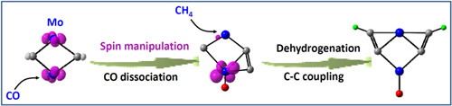 图1 一氧化碳解离吸附调控Mo金属中心的自旋态,实现甲烷的活化转化 |