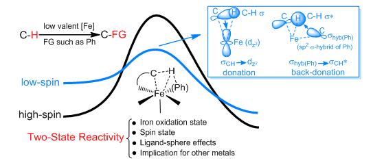 图2 低价铁催化活化碳氢键的二态反应性图像 |