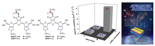 图1 两维pi-拓展的醌式三噻吩化合物及其电子迁移率