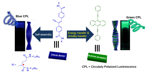 图 1 自组装纳米纤维中的手性和能量转移放大的圆偏振发光