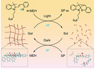 最近,他们在苯丙氨酸二肽有机凝胶体系中,通过π-π堆积作用直接引入适量的光酸分子,利用可见光照射,实现了二肽组装体凝胶-溶胶的原位可逆转变,为短肽分子组装体凝胶的应用提供了新思路。相关研究成果近期发表在Angew. Chem. Int. Ed., 2018, 57, 1903-1907。