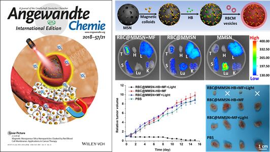 在国家自然科学基金委、科技部和中国科学院的支持下,化学所胶体、界面与化学热力学院重点实验室课题组科研人员长期致力于光敏药物载体的设计、组装与应用,取得了系列进展(Angew. Chem. Int. Ed. 2018, 57, 7759; Angew. Chem. Int. Ed. 2016, 55, 13538; Adv. Funct. Mater. 2016, 26, 2561;ACS Nano 2012, 6, 8030;Chem. Eur. J. 2013, 19, 4548)。在此基础上,该研究组通过分离天然红细胞膜及囊泡化,实现磁性介孔硅纳米粒子表面的红细胞膜重组,并用于光敏药剂的负载与高效运输及肿瘤的光动力治疗。