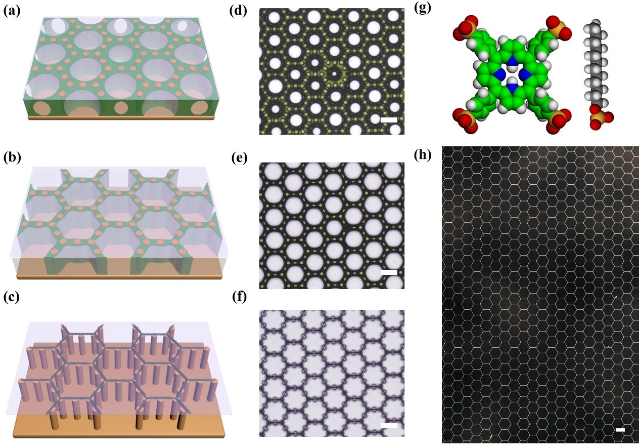 获得高精度的分子组装图案是功能分子器件制备和应用的前提。在气液界面,经典的L-B膜组装技术已经能够达到分子精度,但是在图案化方面存在巨大挑战。由大量气泡构成的泡沫体系具有很大的比表面积,气泡之间的液膜厚度可以达到数十纳米(普通黑膜)甚至几个纳米(牛顿黑膜),具有获得高精度图案的巨大潜力。