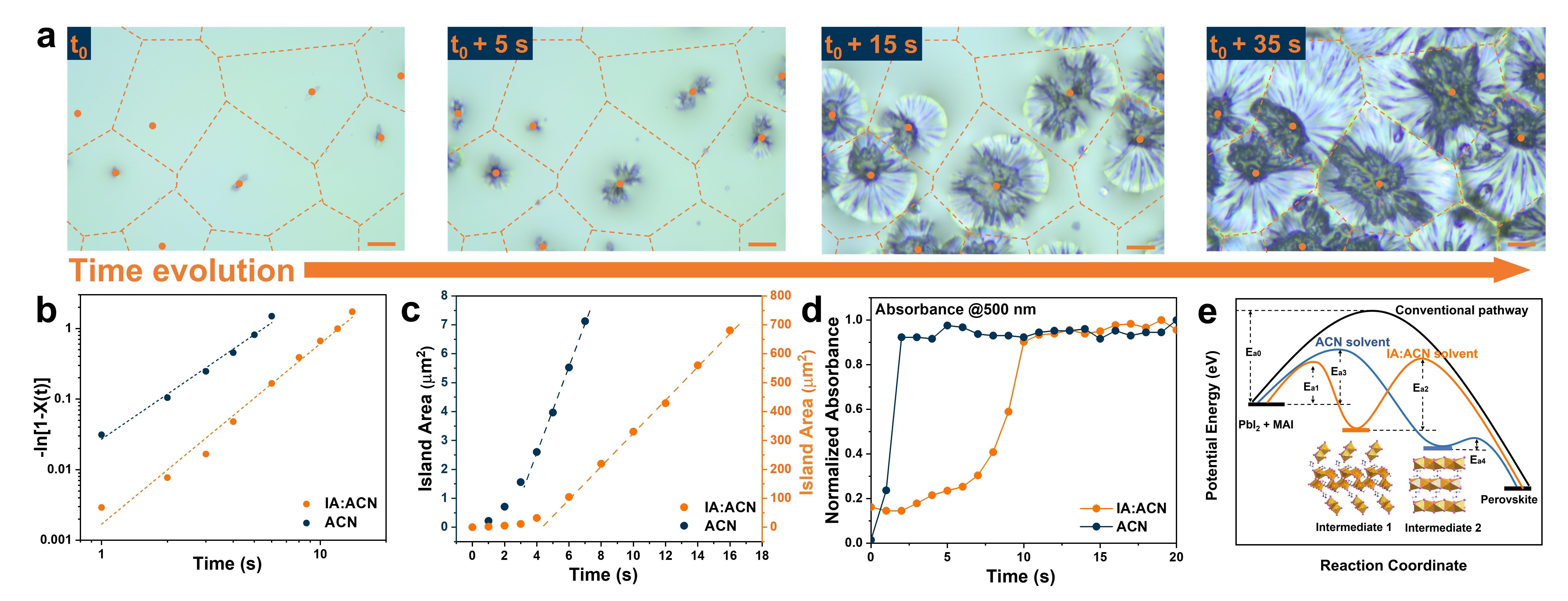 图2 通过低沸点溶剂-中间体工程策略涂膜的结晶动力学过程