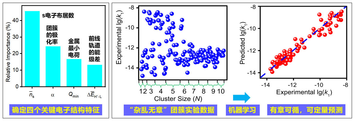 图1 基于电子结构特征(左)针对实验测定的金属团簇反应速率常数进行机器学习建模(右)