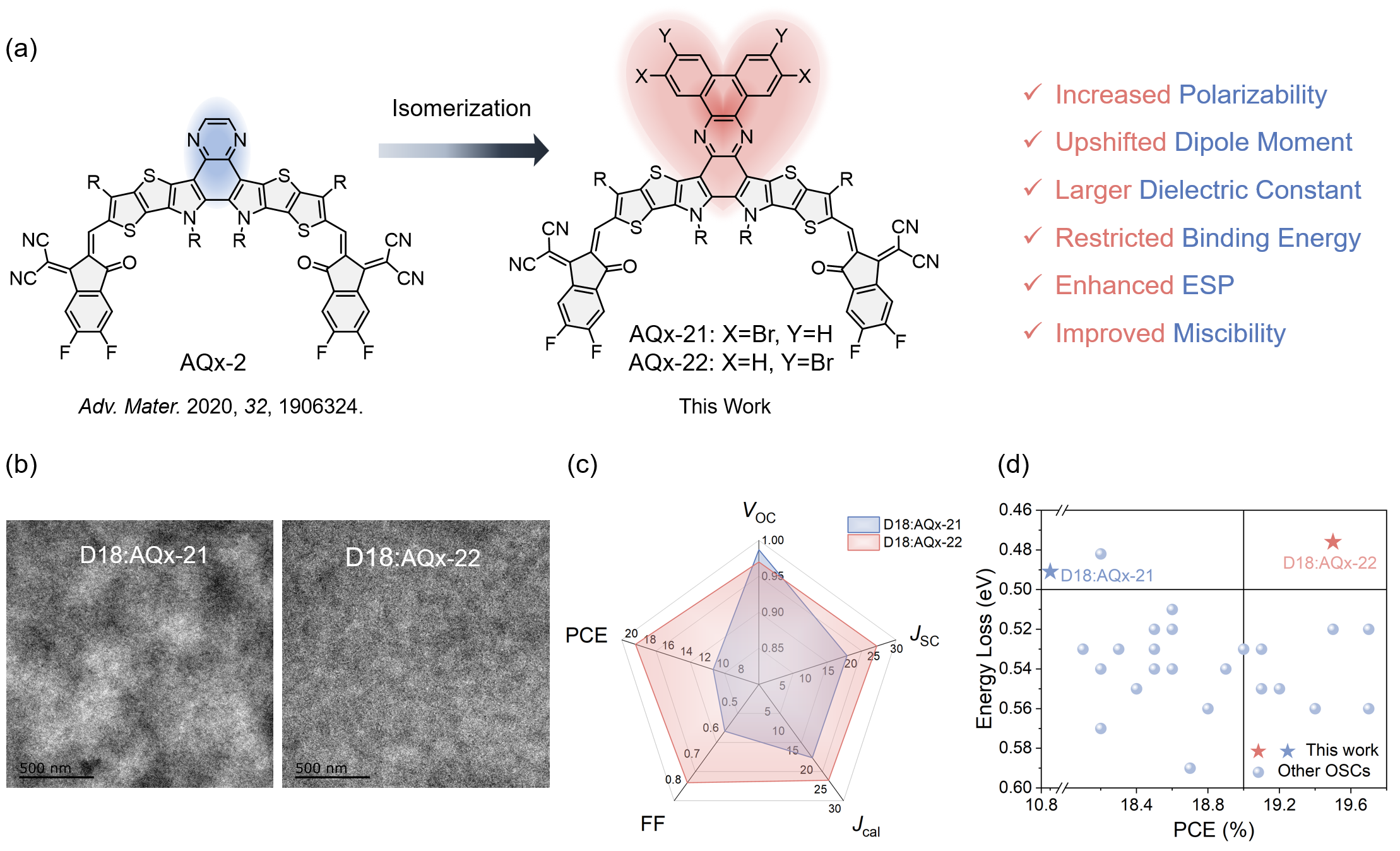 受体主核溴化的异构化效应实现低能量损失的高性能有机太阳能电池