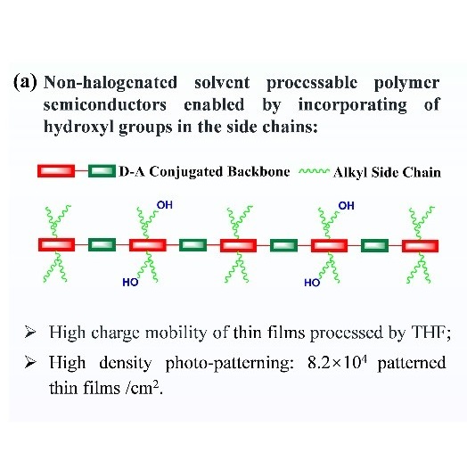 近二十年来,聚合物半导体在有机光电器件中的应用方面取得了显著进展。但是,将聚合物半导体的可溶液加工、柔性这些独特性质应用在集成电路里仍面临困难,比如材料溶解...