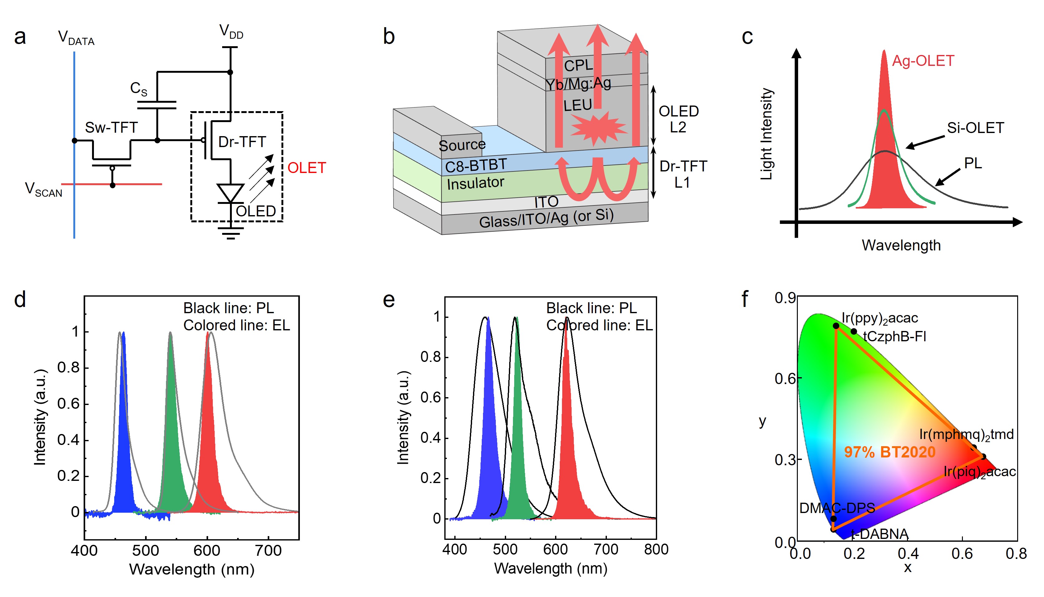 有机发光晶体管(OLETs)作为一种集成电流放大功能和发光功能于一体的新型电致发光器件,被认为是开发下一代变革性显示技术的理想器件基元。窄光谱电致发光器件在广色域...