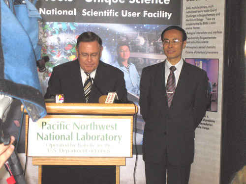 2005年11月,美国西北太平洋国家实验室主任L. Peters博士、副主任D. Ray 博士以及Battle Fellow J. Futrell博士等一行5人访问了化学所,参观了相关实验室。在访问期间,双方就可能的合作研究展开了初步讨论,L. Petetrs博士表示西北太平洋国家实验室愿意与化学所在包括分子/纳米科学、功能材料等多个领域开展合作研究的意向。