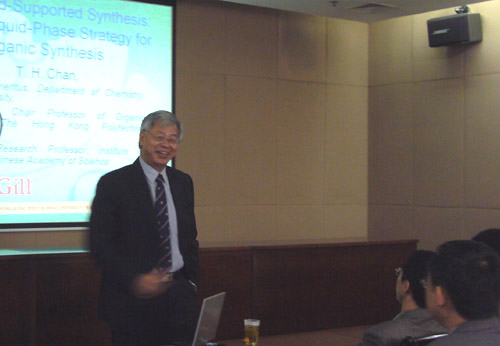 教授应邀访问化学所,并做了题为“Ionic-Liquid- Supported Synthesis : A Novel Solution Phase Strategy for Organic Synthesis”的学术报告。