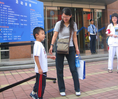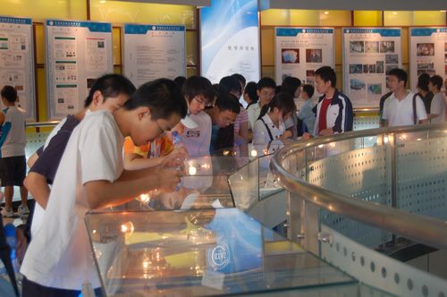 来自北京各大学、中小学和科技界、新闻媒体及社会各界公众上千人聚集到化学所, 从还在上幼儿园的小朋友到年逾花甲的老人,有的是老师带着学生,有的是家长带着孩子,还有一家人集体前来的,往日宁静的化学所变成了公众探询科学奥秘的欢乐的海洋。