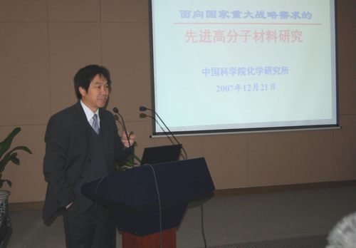 参观结束后,路院长一行听取了化学所科研人员的工作汇报,张德清副所长、杨士勇研究员、赵进才研究员分别以《化学所能源和绿色化学整体布局和研究工作进展》、《面向国家战略需求的先进高分子材料》、《汽油选择性氧化深度脱硫技术》为题做了专题汇报。