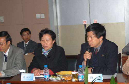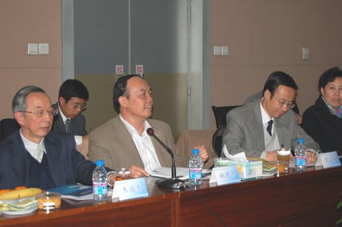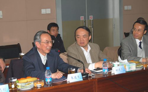 万立骏所长向路甬祥院长一行做了工作汇报,报告的题目是《全面推进三期创新,建设和谐奋进研究所》。万所长从创新三期以来,化学所深入战略研究、全面推进三期创新,科研工作进展,培养引进并重、探索创新人才成长规律,文化创新、建设和谐奋进研究所等方面做了汇报。万所长还向院领导汇报了化学所下一步的工作思路。
