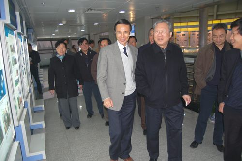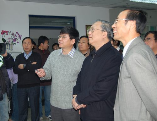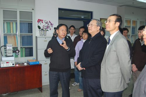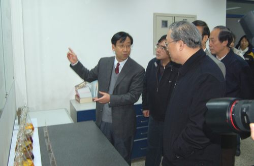 路甬祥院长一行参观了化学所光化学院重点实验室、有机固体院重点实验室,分别听取了赵进才研究员关于汽油氧化脱硫,宋延林研究员、李永舫研究员、薄志山研究员和林原研究员关于太阳能电池,徐坚副所长关于碳纤维等方面研究工作进展的介绍。路甬祥院长对化学所在基础研究以及满足国家需求方面的研究取得的成绩给予充分肯定。路院长一行还参观了化学所展厅,听取了万立骏所长关于化学所50年发展历程的介绍。