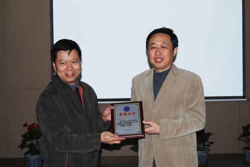 何岩副秘书长向徐坚同志颁发荣誉证书