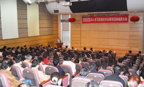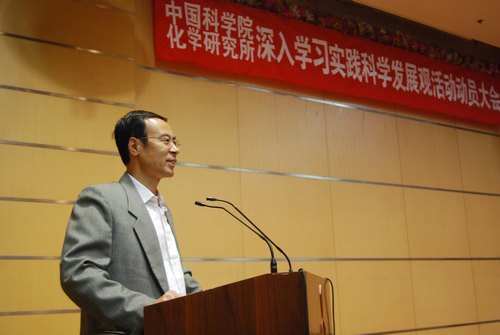 化学所党委书记、化学所学习实践活动领导小组组长杨淑霞同志作了《化学所深入学习实践科学发展观活动动员报告》,从四个方面对化学所开展学习实践活动进行了全面的部署:一是充分认识开展深入学习实践科学发展观活动的重大意义,二是准确把握开展深入学习实践活动的指导思想、目标要求和主要原则,三是要准确把握学习实践活动要解决的突出问题,四是加强对学习实践活动的组织领导。
