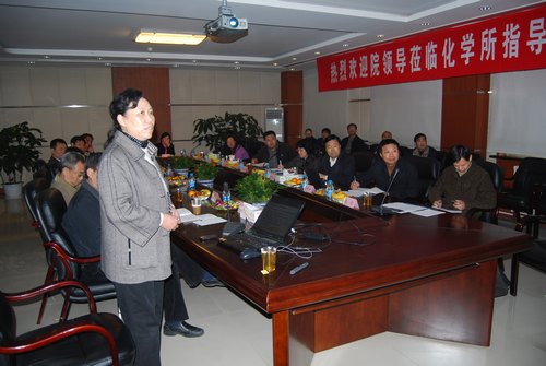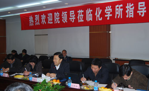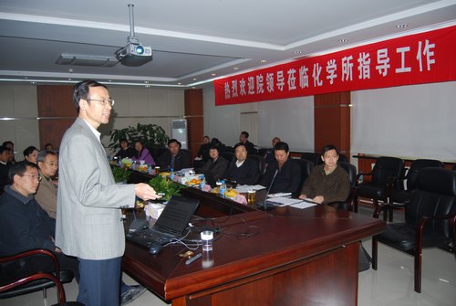 万立骏所长以“坚持科学发展观,建设一流化学研究所”为题向王庭大同志一行作了工作汇报。介绍了化学所的发展历程、战略定位、科研布局、人才队伍等方面的情况,重点介绍了化学所在创新工程以来的显著变化,在基础研究和面向国家重大战略需求的高技术研究方面的一系列重要成果。
