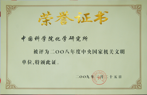 这是化学所继2003-2007年连续五年被评为中央国家机关文明单位之后,第六次获此殊荣。