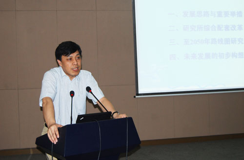 潘教峰局长以“我院发展中的几个重要问题”为题作了报告,报告包括发展思路与重要举措、研究所综合配套改革、至2050年路线图研究、未来发展的初步构想四个部分。潘局长首先从战略的高度分析了当前中科院的发展思路和重要举措,通过和德国研究机构定位的比较,阐述了中科院的战略定位和重要改革发展举措。潘局长还对院综合配套试点改革工作、院的十二五规划路线图工作作了深入的分析和说明。最后,潘局长介绍了中科院未来发展的初步设想,强调了院面向2020年知识创新工程的总体发展目标。