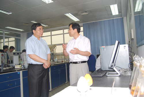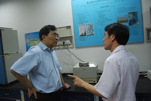 白春礼常务副院长先后视察了光化学院重点实验室和工程塑料院重点实验室。赵进才研究员简要说明了光催化的机理,并通过光催化水净化装置对纳米催化污染物降解情况进行了详细介绍。阳明书研究员介绍了利用纳米技术进行污水净化的前期研究进展。
