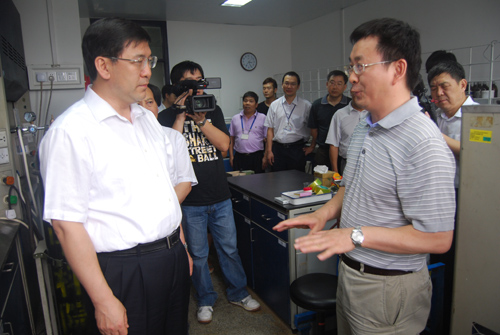随后,阴副院长一行实地检查了化学所分子识别与功能院重点实验室、高技术材料实验室、工程塑料院重点实验室、中控室、配电室、化学药品库,并和工作人员亲切交谈,讨论在实际工作中可能遇到的一些安全问题。