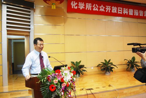 化学所宣传片,带公众们走进了化学所的世界,短短的十分钟,就使没有到过化学所的朋友们对化学所的所况有了大概的了解。接下来的报告会由杨振忠副所长主持,两位科学家的报告,带大家走进了神奇的化学世界。