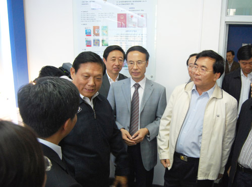 10月13日下午,中共中央政治局委员、北京市委书记刘淇到化学所调研“纳米材料绿色打印制版技术”项目相关工作。中国科学院常务副院长白春礼,中科院党组成员、中科院北京分院党组书记何岩,中科院北京分院副院长乔均录,北京市委常委赵凤桐,北京市副市长苟仲文,北京市委副秘书长李福祥,市政府副秘书长戴卫,中关村管委会主任郭洪及北京市科委党组书记、副主任杨伟光等领导陪同调研。化学所全体所领导全程陪同调研。