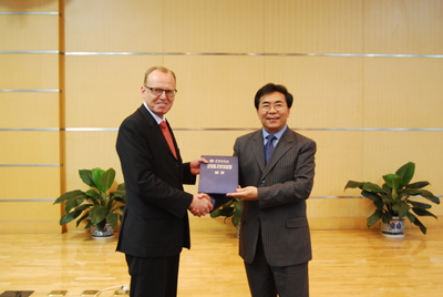 白春礼常务副院长为Besenbacher教授颁发“中国科学院爱因斯坦讲席教授”证书