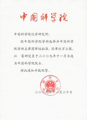 化学所万立骏研究员、江雷研究员当选中国科学院院士。