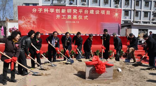 2010年4月13日上午,化学所洋溢着一派喜气洋洋的节日气氛, “分子科学创新研究平台建设项目”开工奠基仪式在化学所隆重举行。