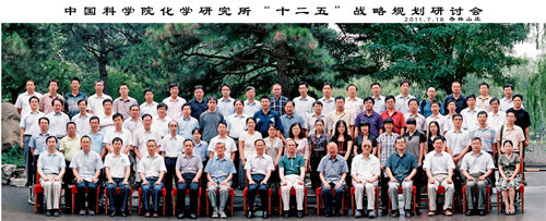 2011年7月18日-19日,化学所“十二五”战略规划研讨会在杏林山庄举行。国家自然科学基金委副主任姚建年院士、化学部副主任陈拥军研究员、化学部三处处长杨俊林研究员,中科院基础局化学与交叉处处长郭大军研究员、副处长刘耀虎博士等有关领导,化学所院士、所领导、研究员及职能部门负责人等100余人参加了研讨会。会议由万立骏所长主持。
