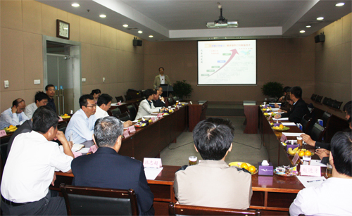 随后,詹文龙副院长一行与化学所科研人员进行了座谈。座谈会由黄敏副局长主持。万立骏所长首先致欢迎辞,并向詹文龙副院长汇报了化学所“十二五”期间“一个定位、三个重大突破、五个重点培育方向”规划具体情况以及实施方案的初步设想,表示化学所将进一步发挥综合优势,打造科研组织新模式,组建交叉研究团队,促进学科交叉;同时采取引进与培养相结合的原则,选拨优秀学科带头人,进一步优化队伍结构;不断完善绩效评价体系,营造宽松氛围,进一步调动全体人员的积极性;努力打造科学研究平台,进一步提升科技创新能力,为化学科学发展和国民经济建设做出新的更大的贡献。