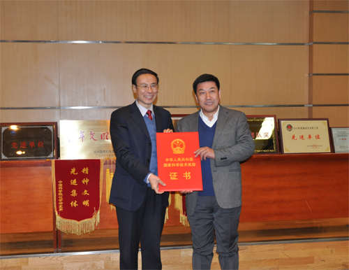 万立骏所长向韩布兴研究员颁发国家自然科学二等奖获奖证书