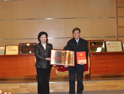 杨淑霞书记向荣获中央国家机关先进基层党组织的有机固体党支部颁发奖牌