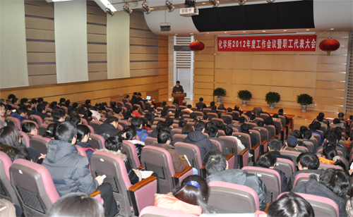 2012年2月17日,化学所召开2012年度工作会议暨职工代表大会,所党政领导、院士、职工代表大会代表,副高级职务以上人员,管理部门全体人员,党支部正副书记,团委委员和研究生会委员200余人参加了大会。杨振忠副所长主持上午的大会。